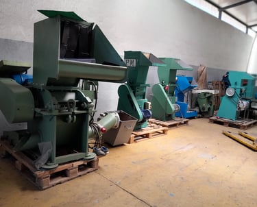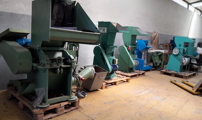 Equipamentos especializados para triturar e reciclar materiais como cobre, cortiça, esferovite e couro, promovendo sustentabilidade industrial.